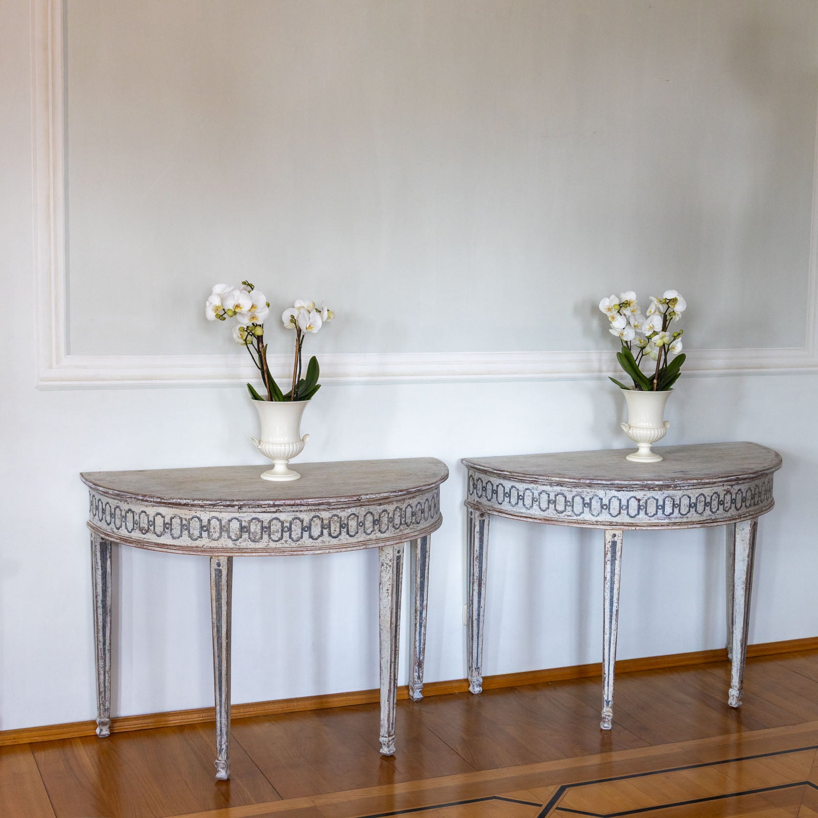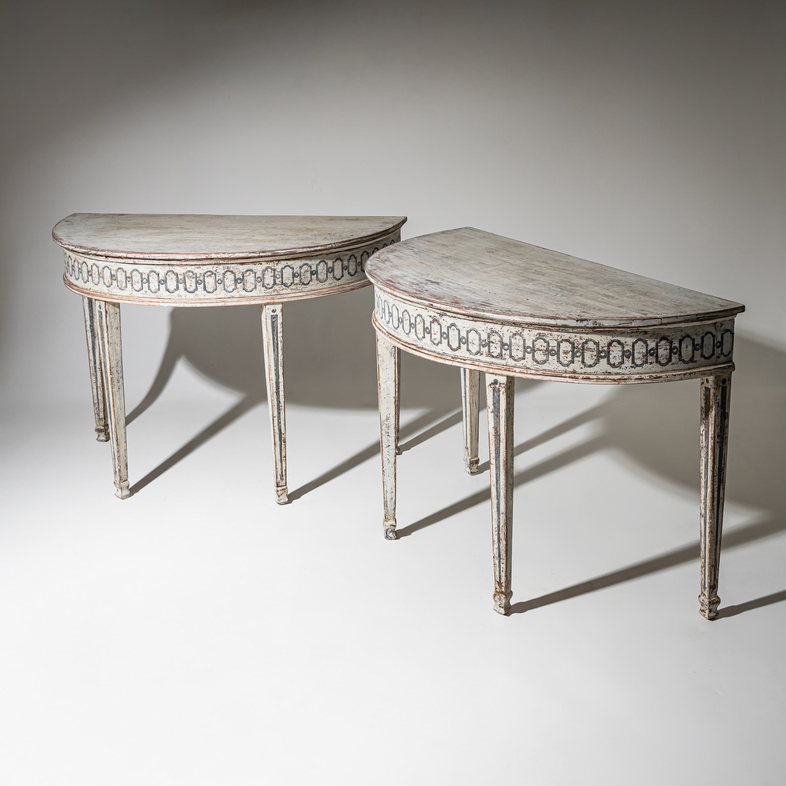 Paar gefasste Demi-Lune-Konsolen, Italien, um 1790