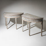 A rare pair of Italian Neoclassical consoles from the late 18th century.