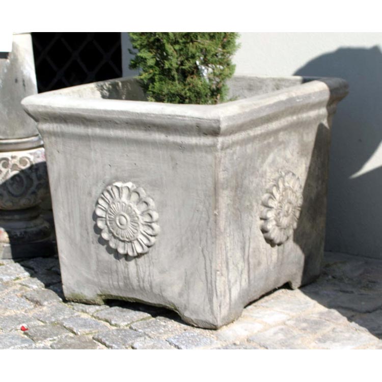 Dieser Pflanztrog ist erhältlich in den Farben: antikweiß, antikgrau, sandsteinfarben und terracotta. In zwei unterschiedlichen Größen erhältlich.