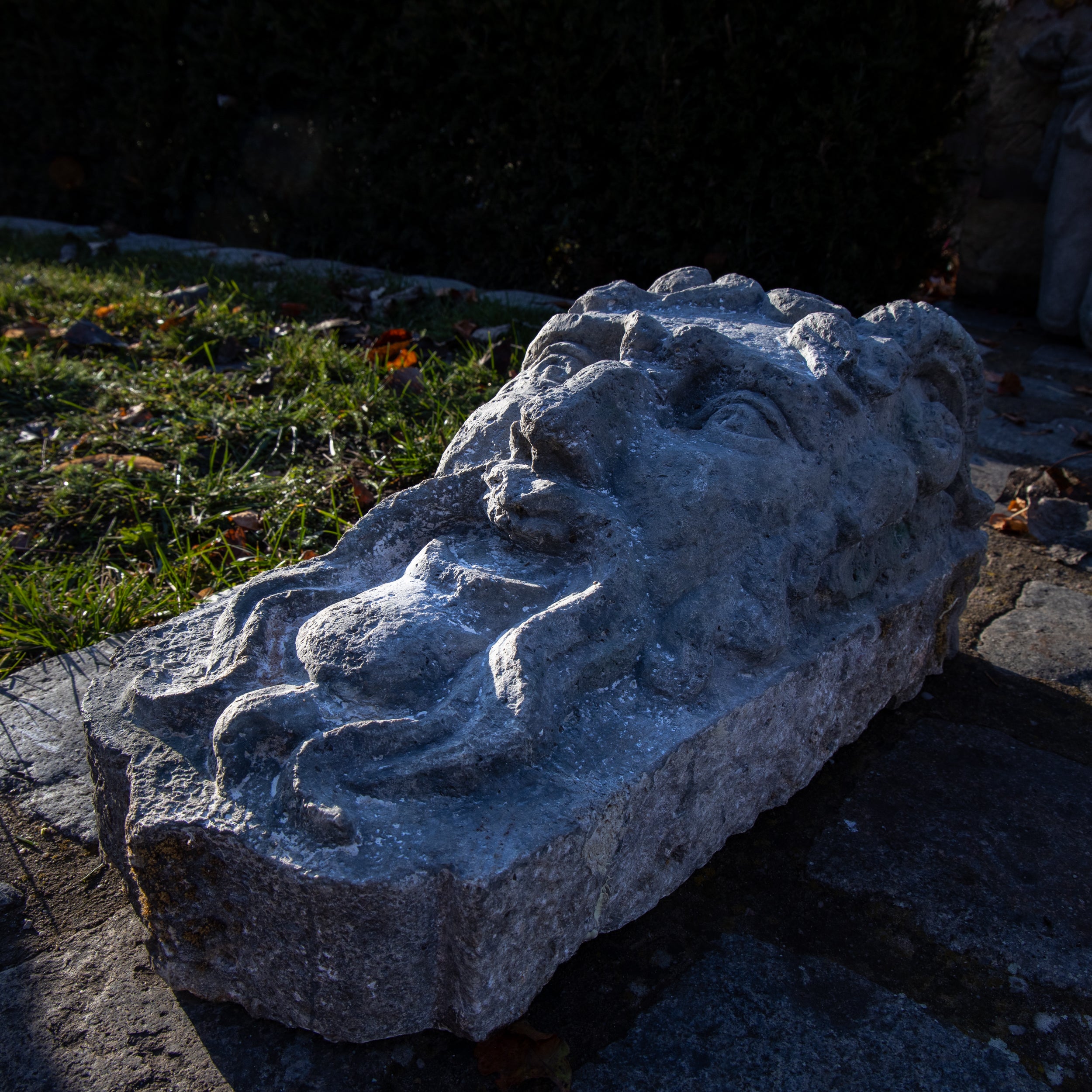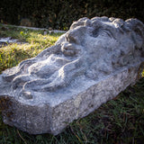 Sandstone keystone carved in the form of a grotesque mask. Expressive sculptural work with strong architectural presence, likely used as a keystone or agraffe in a portal or vaulted structure.