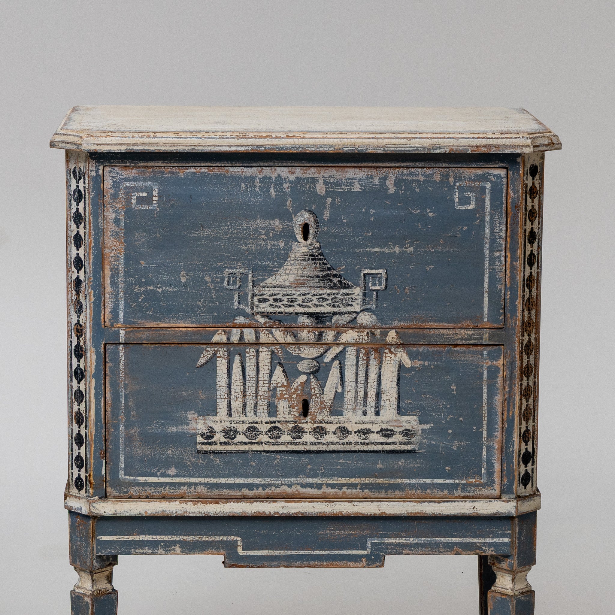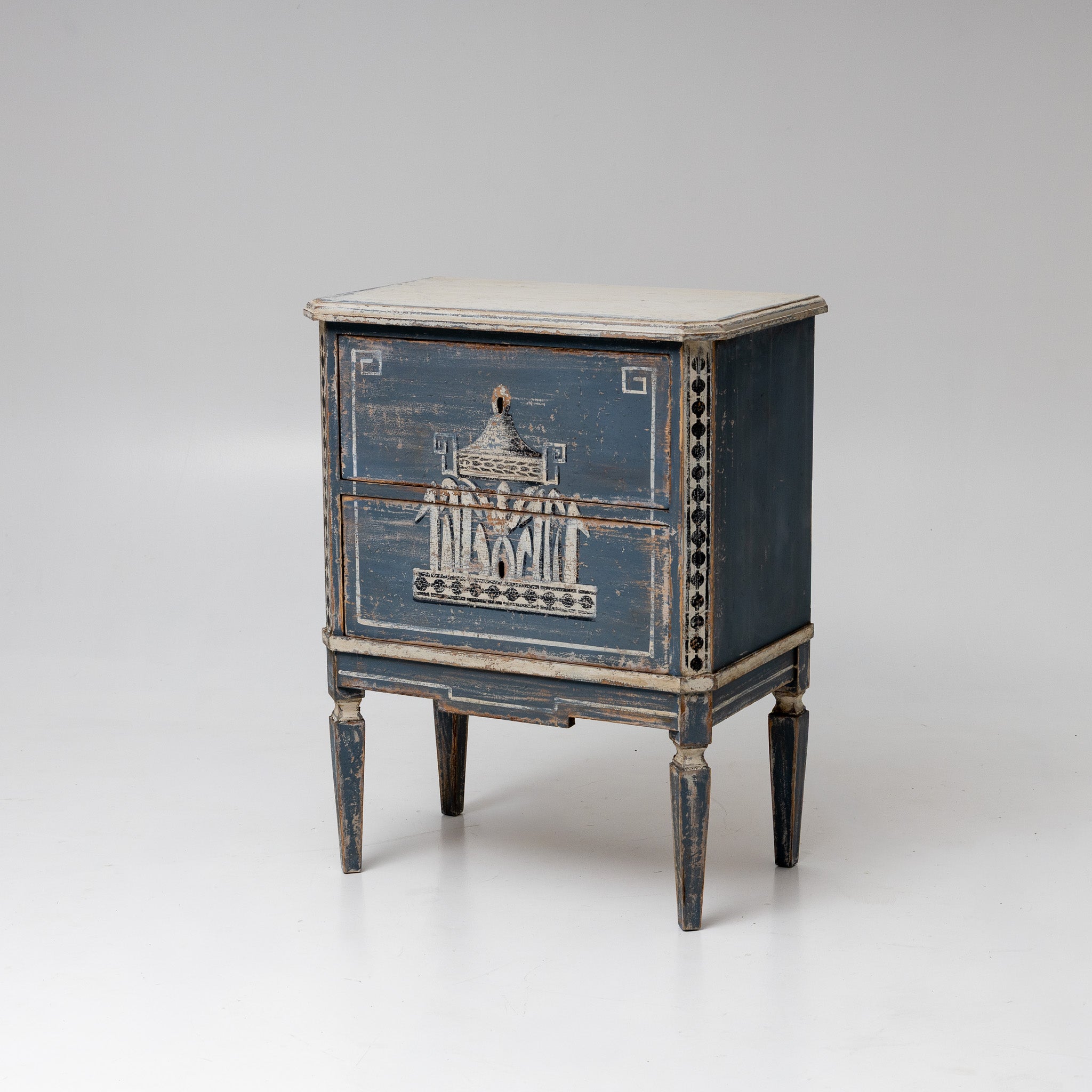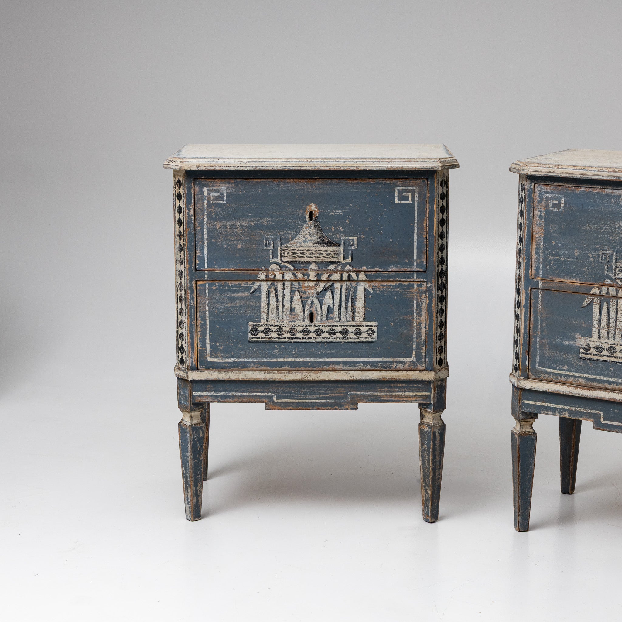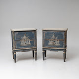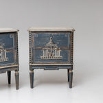 Pair of blue Chests of Drawers in Louis XVI Style with Historicist Painted Decoration