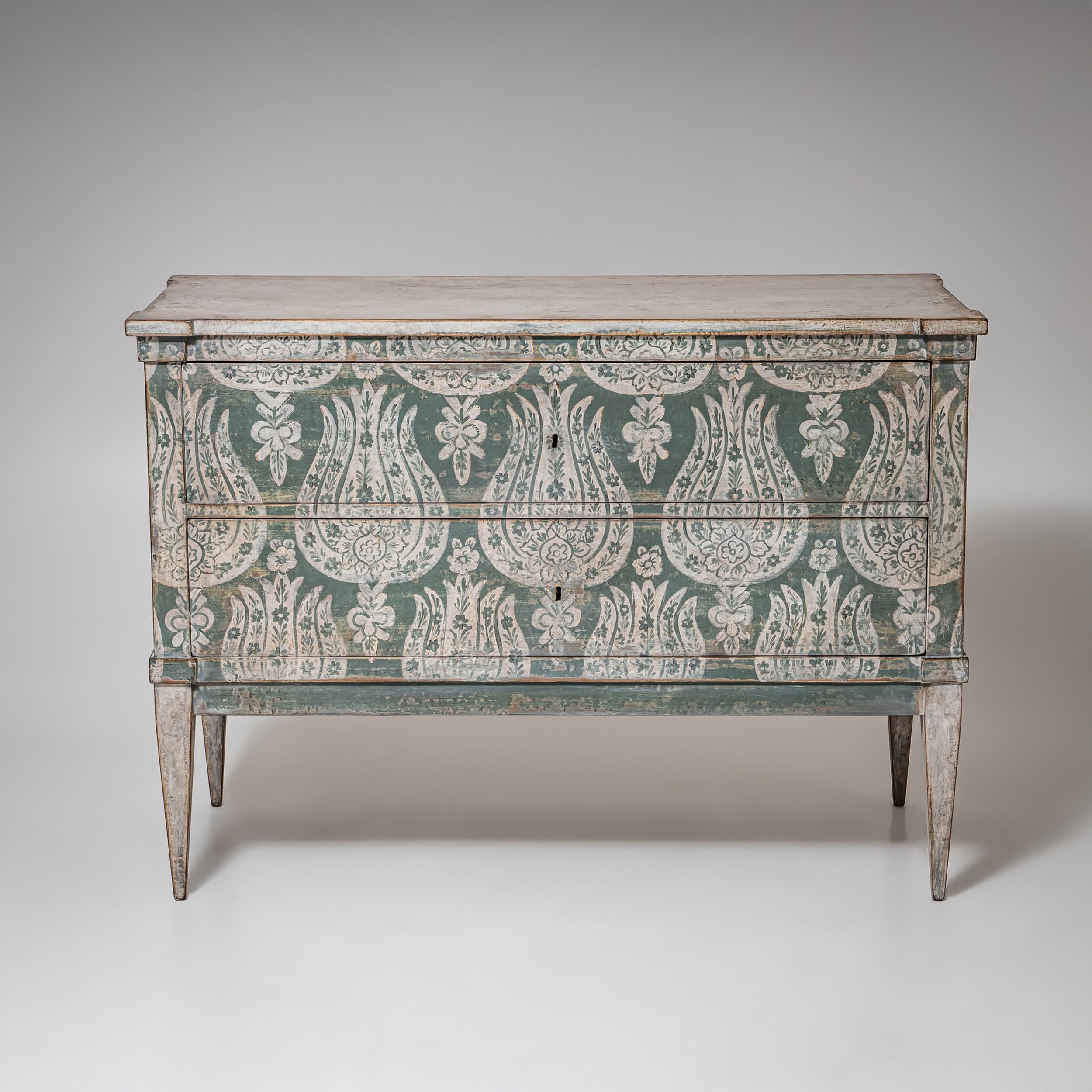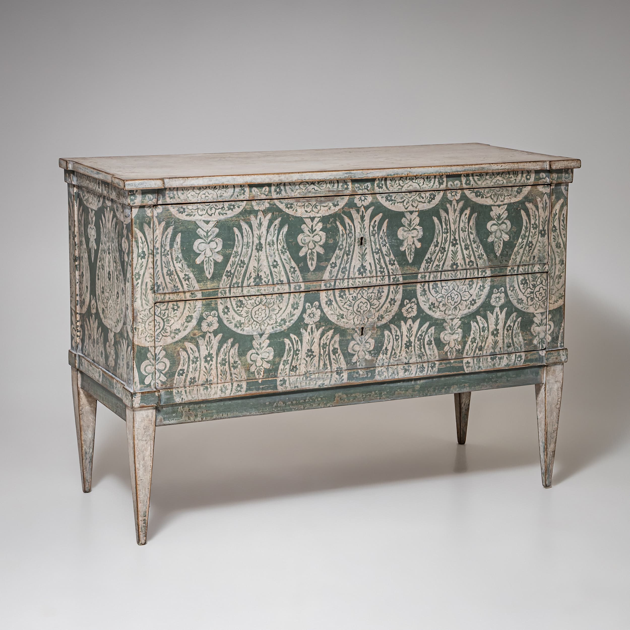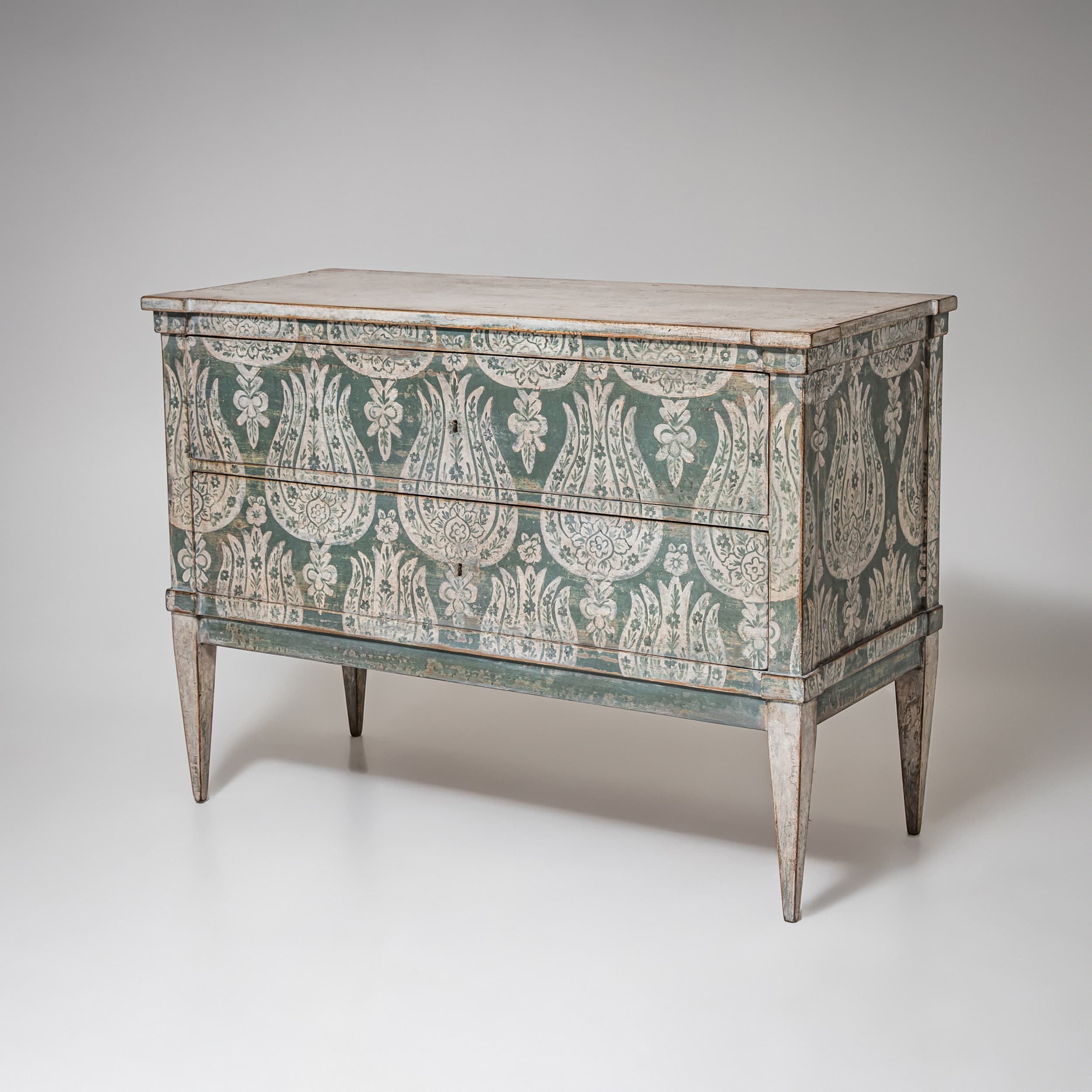 Pair of Gustavian-style Chests of Drawers with hand-painted Floral Stencil Finish