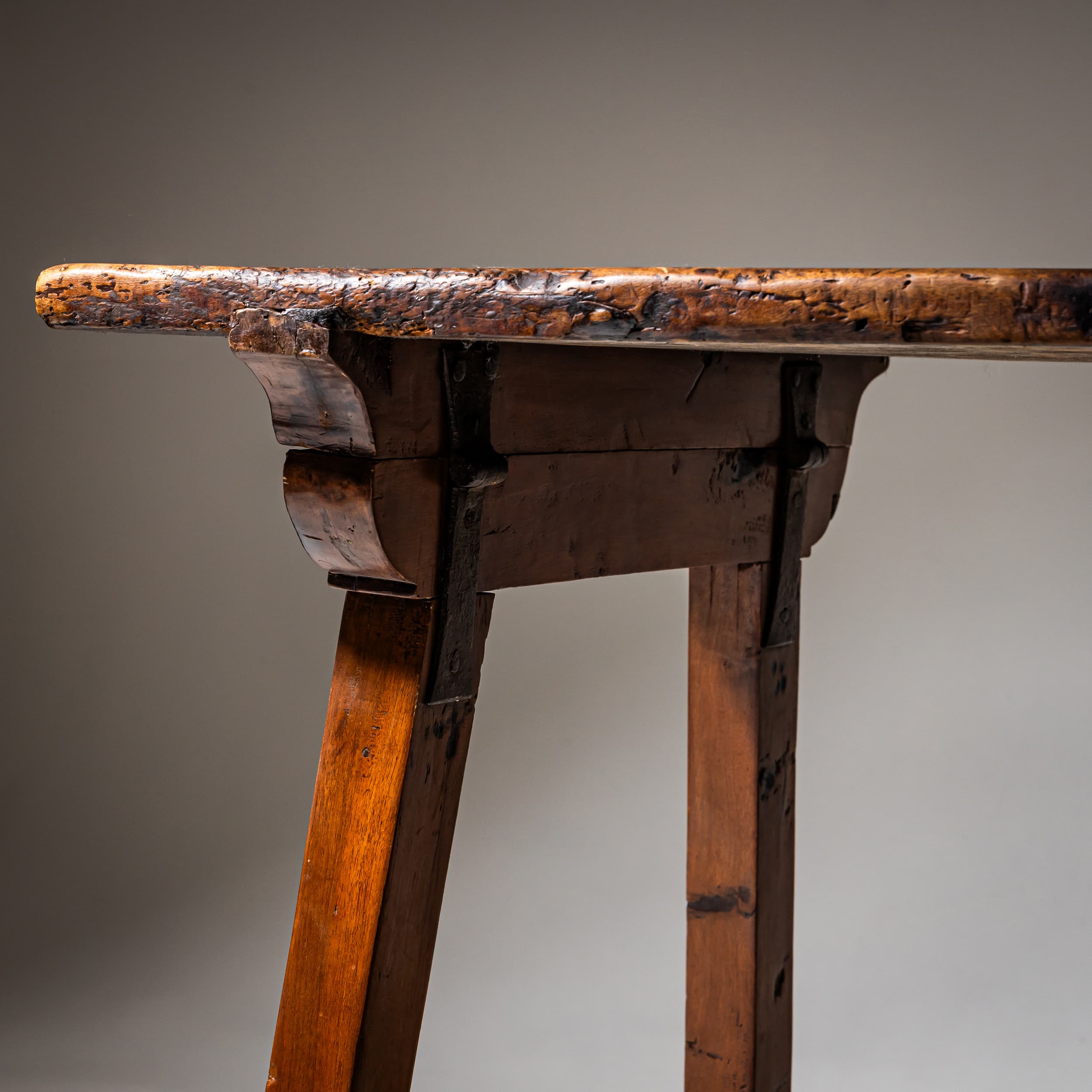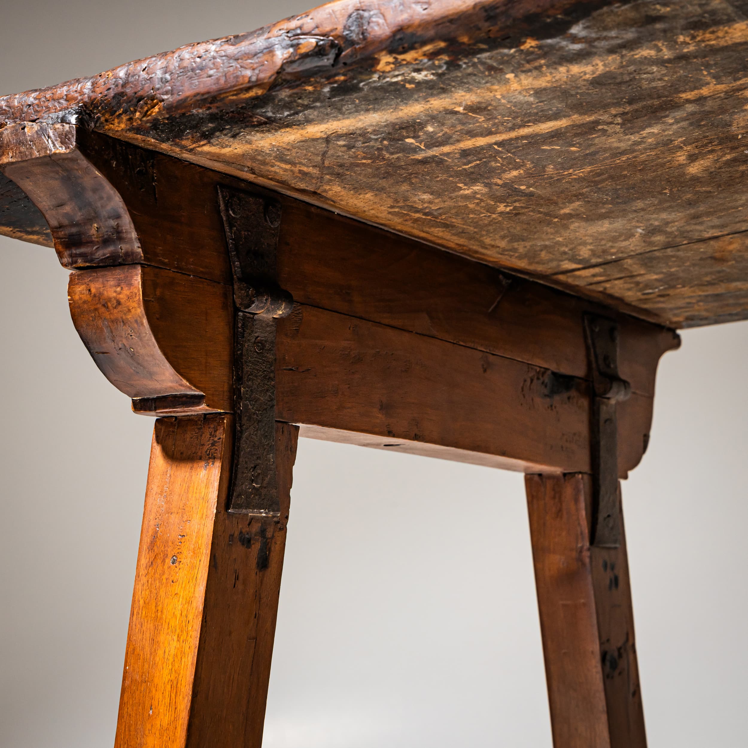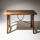 Provincial Table with Iron Stretcher, probably Spain, 19th Century