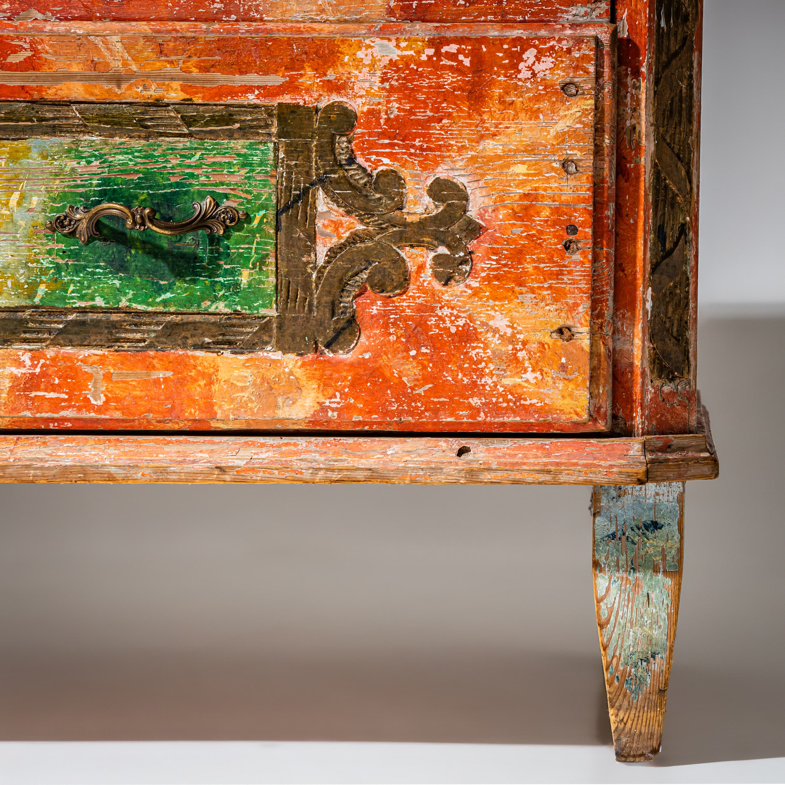 Red-Painted Commode, Irschenberg, Southern Germany, 19th Century
